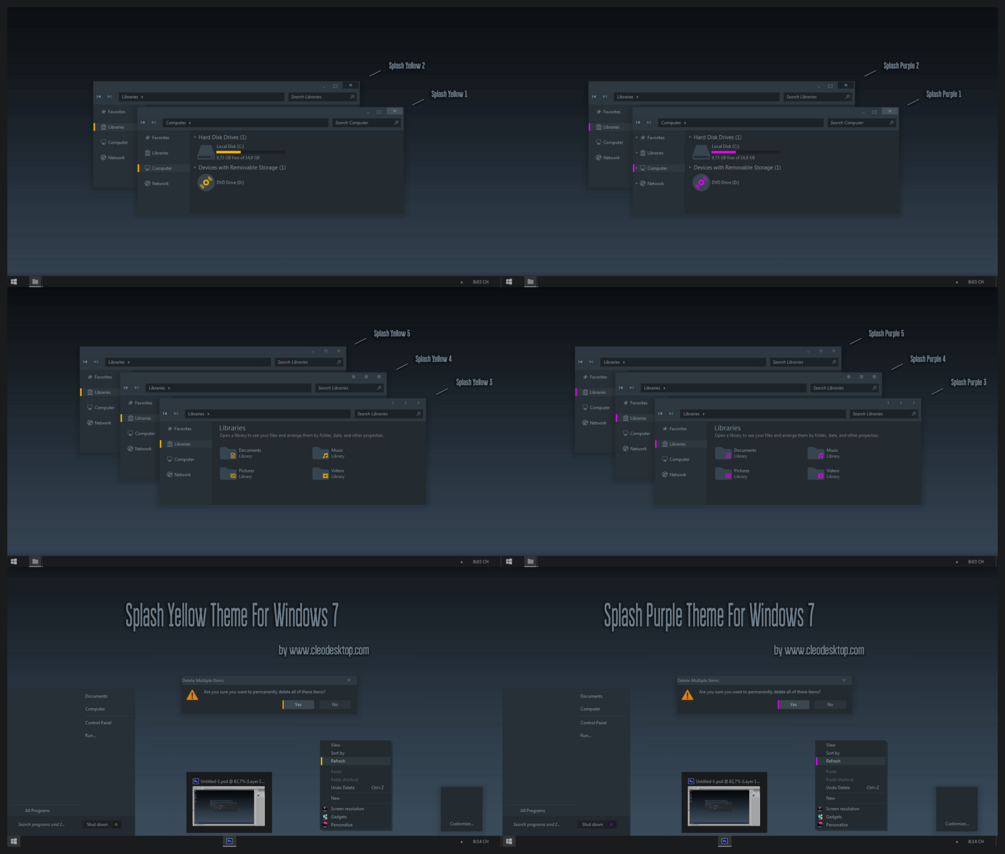Splash Yellow and Purple Theme For Windows 7