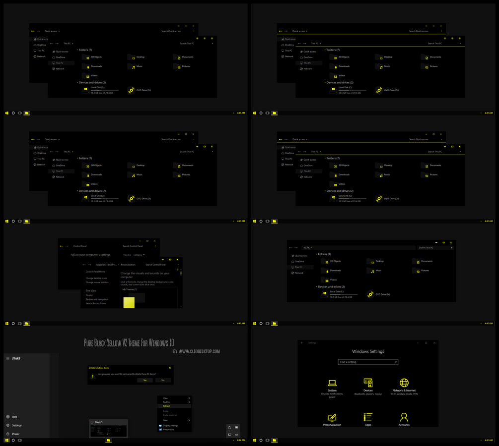 Pure Black Yellow V2 Theme For Windows 10