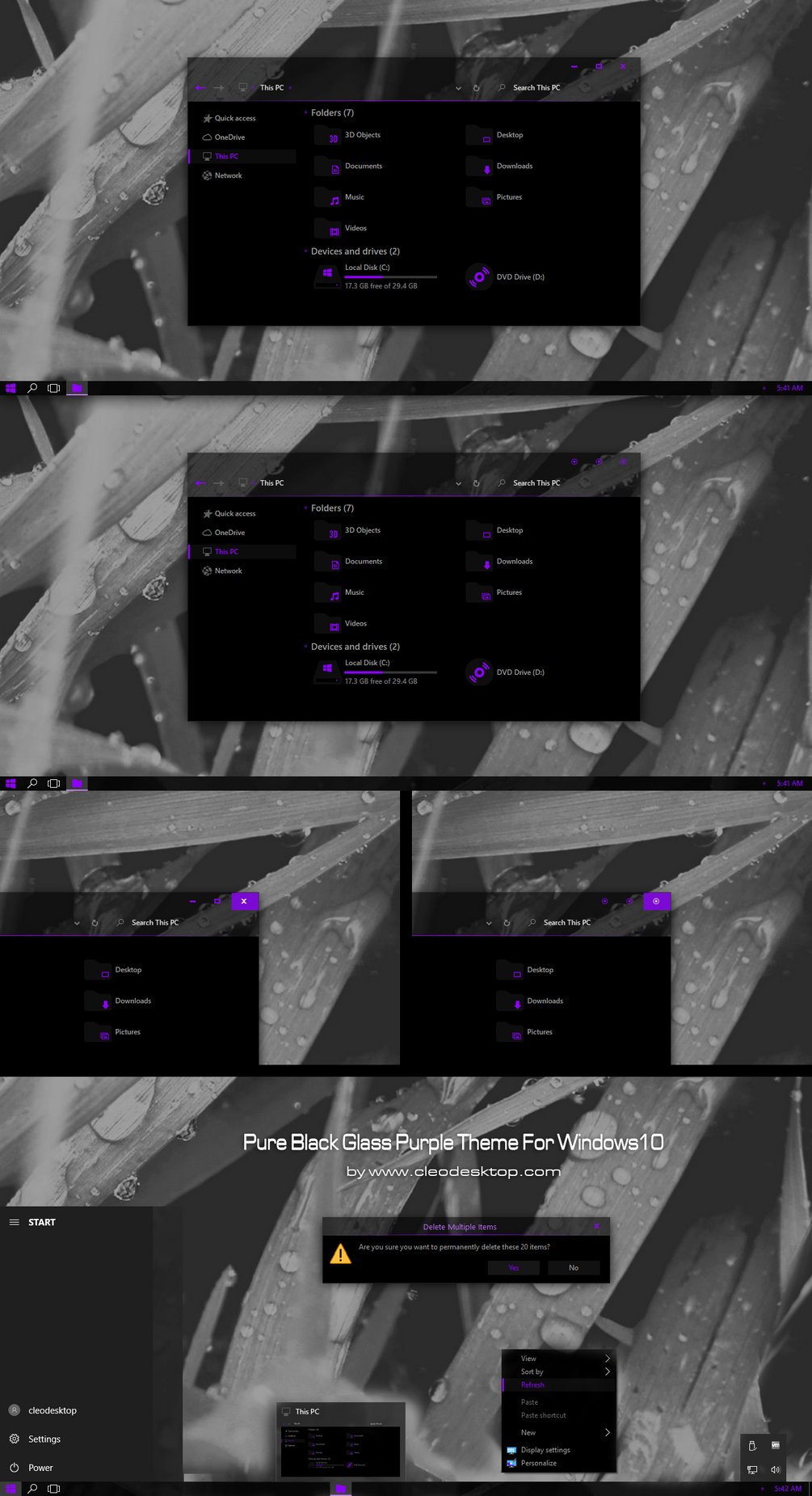 Pure Black Glass Purple Theme For Windows10