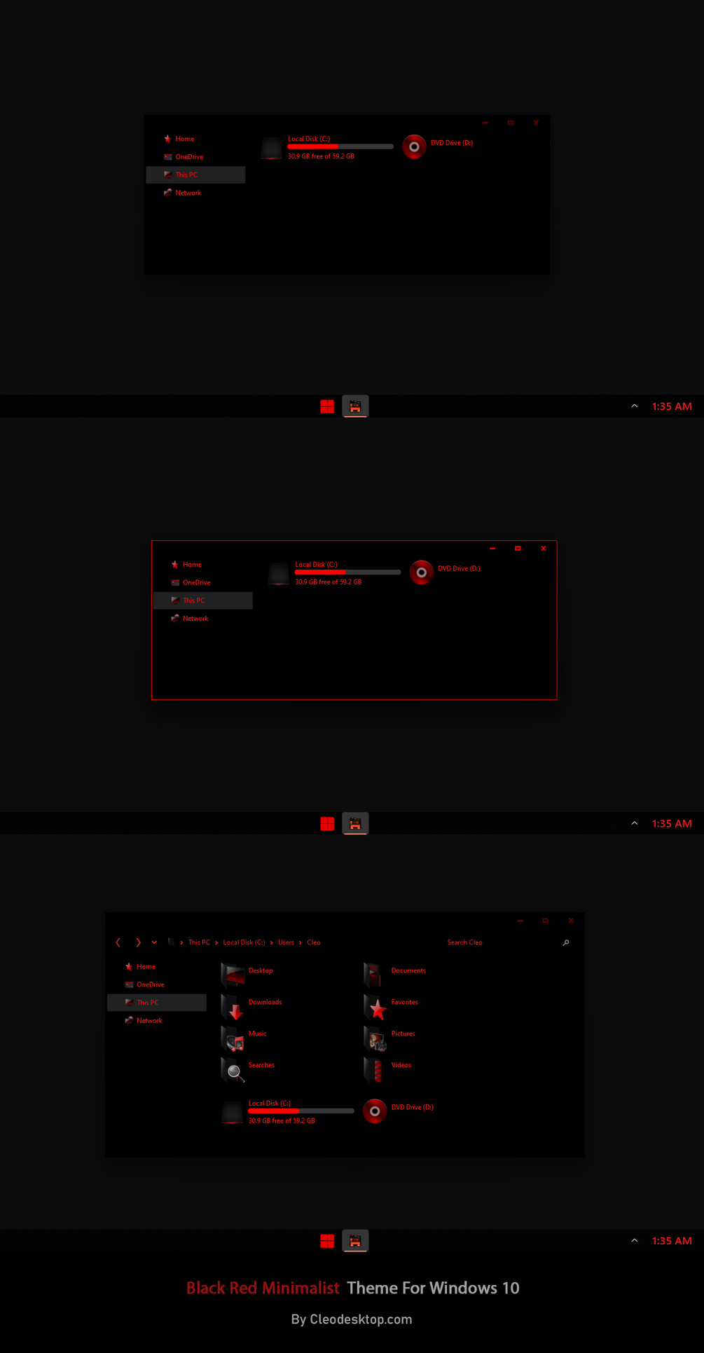 Black Red Minimalist Theme For Windows 10