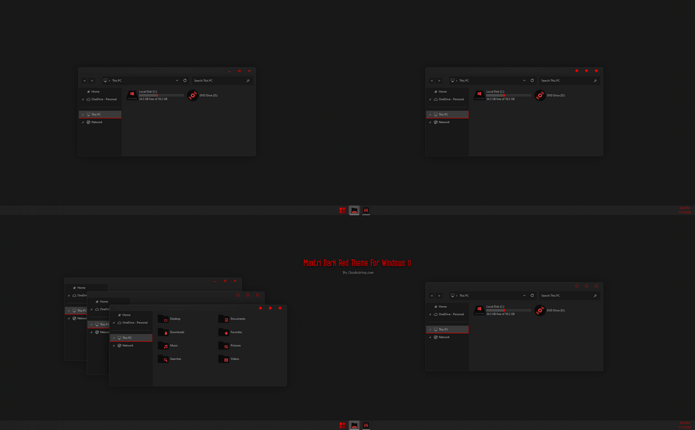 Maxtri Dark Red Theme For Windows 11