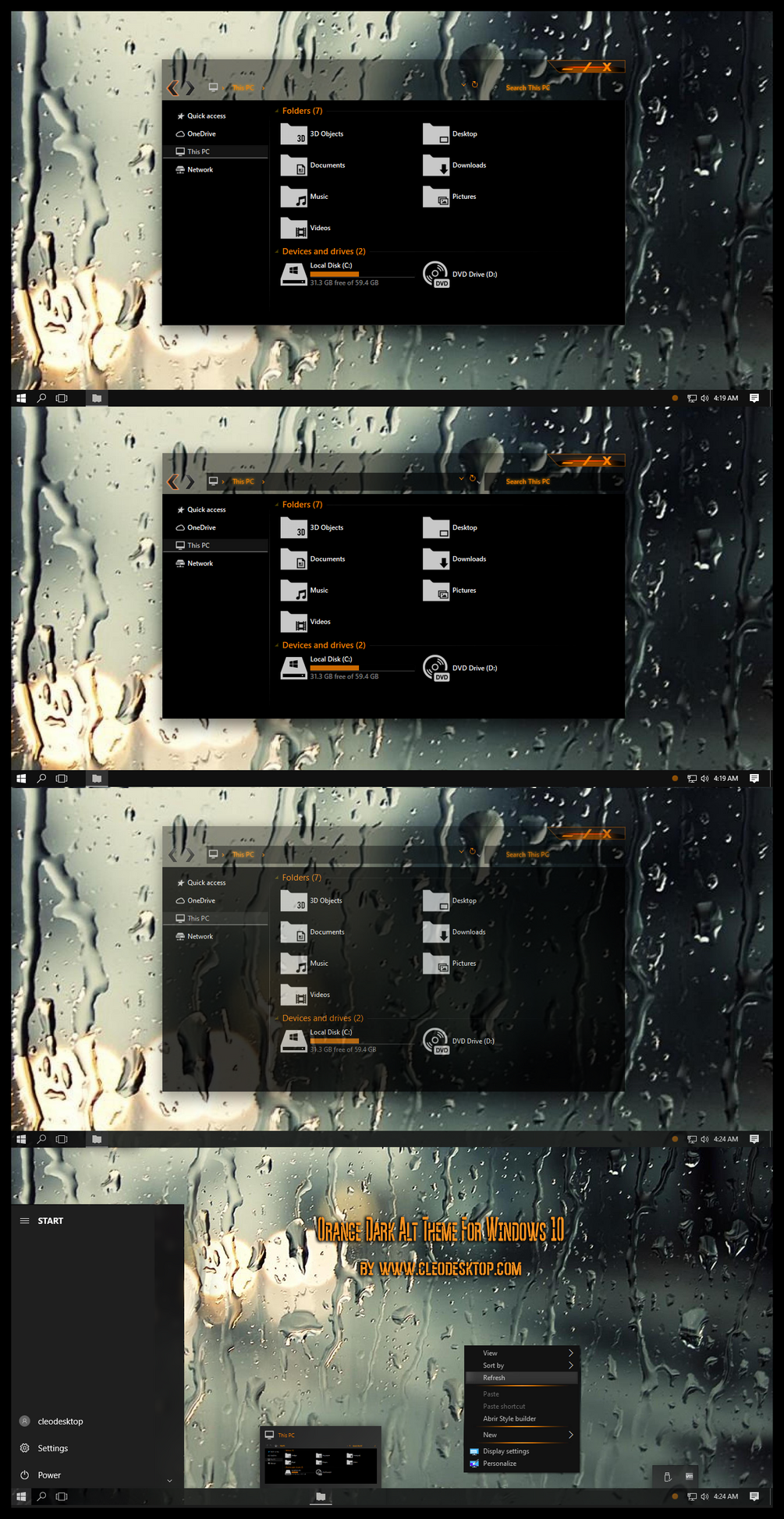 Orange Dark Alt Aero Theme For Windows 10